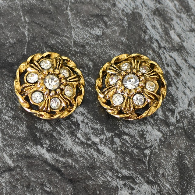 2個セット ヴィンテージ ラインストーン付ボタン 金属製