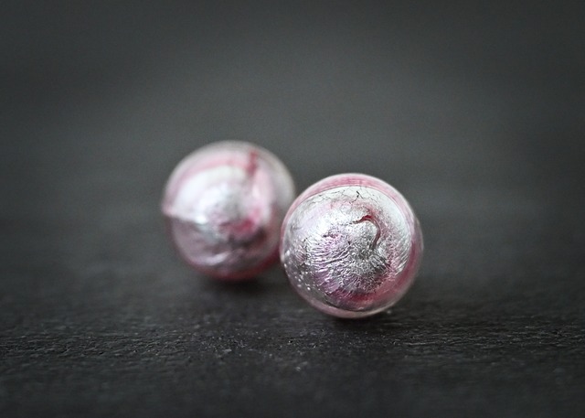 ベネチアンガラス スタッドピアス フュージョンピンク