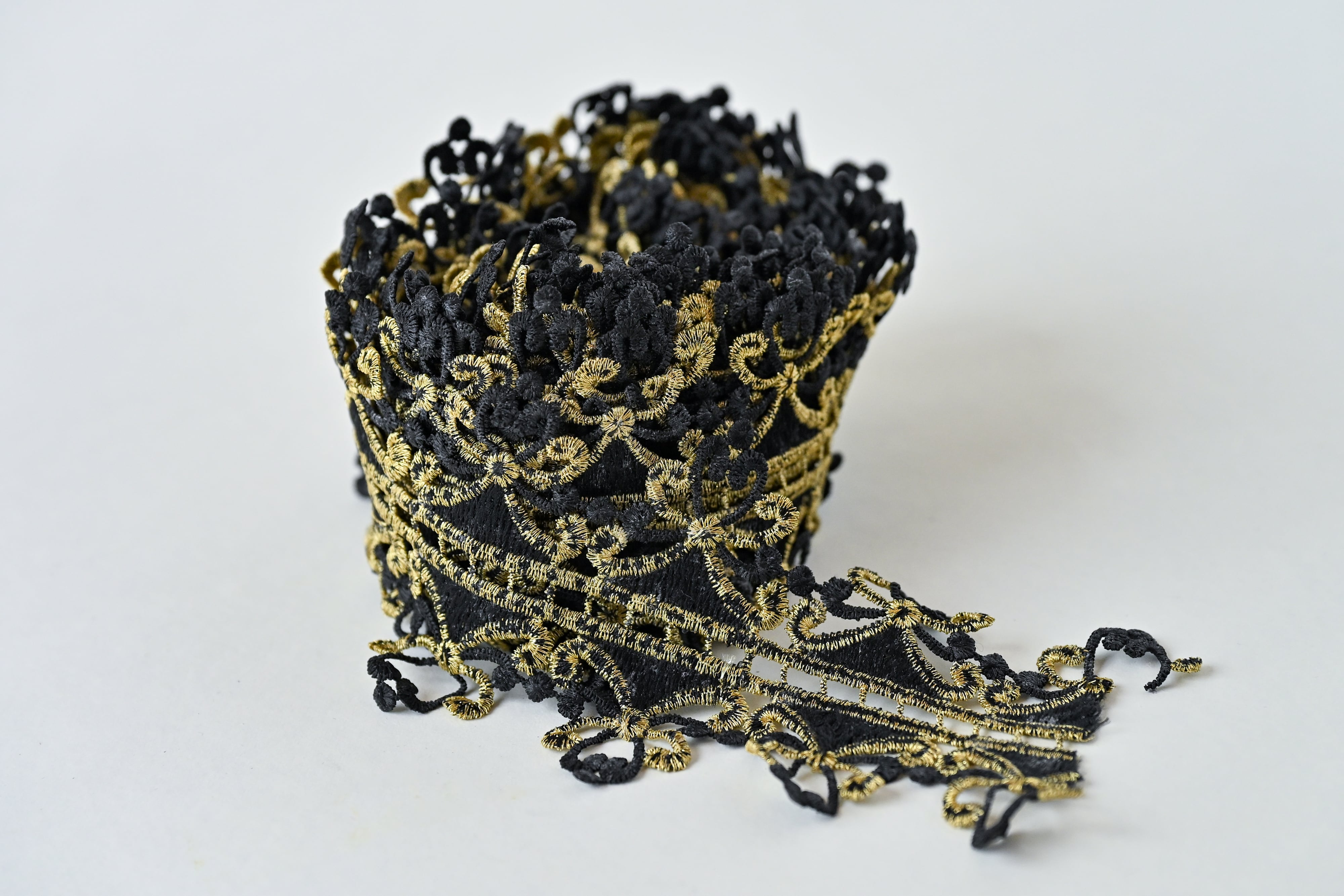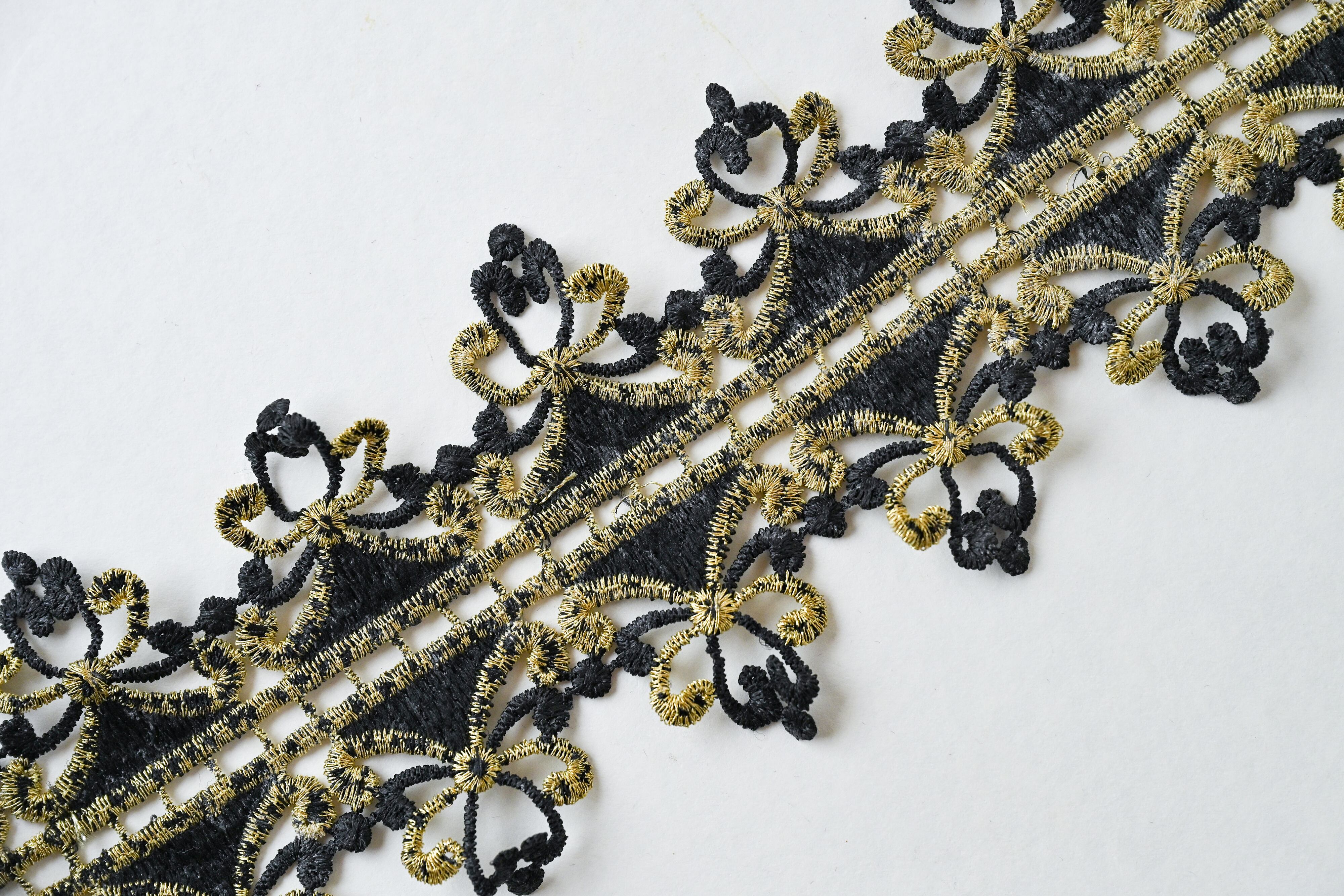 ゴシック&エレガント ブラック×ゴールドの豪華刺繍リボン(1メートル)