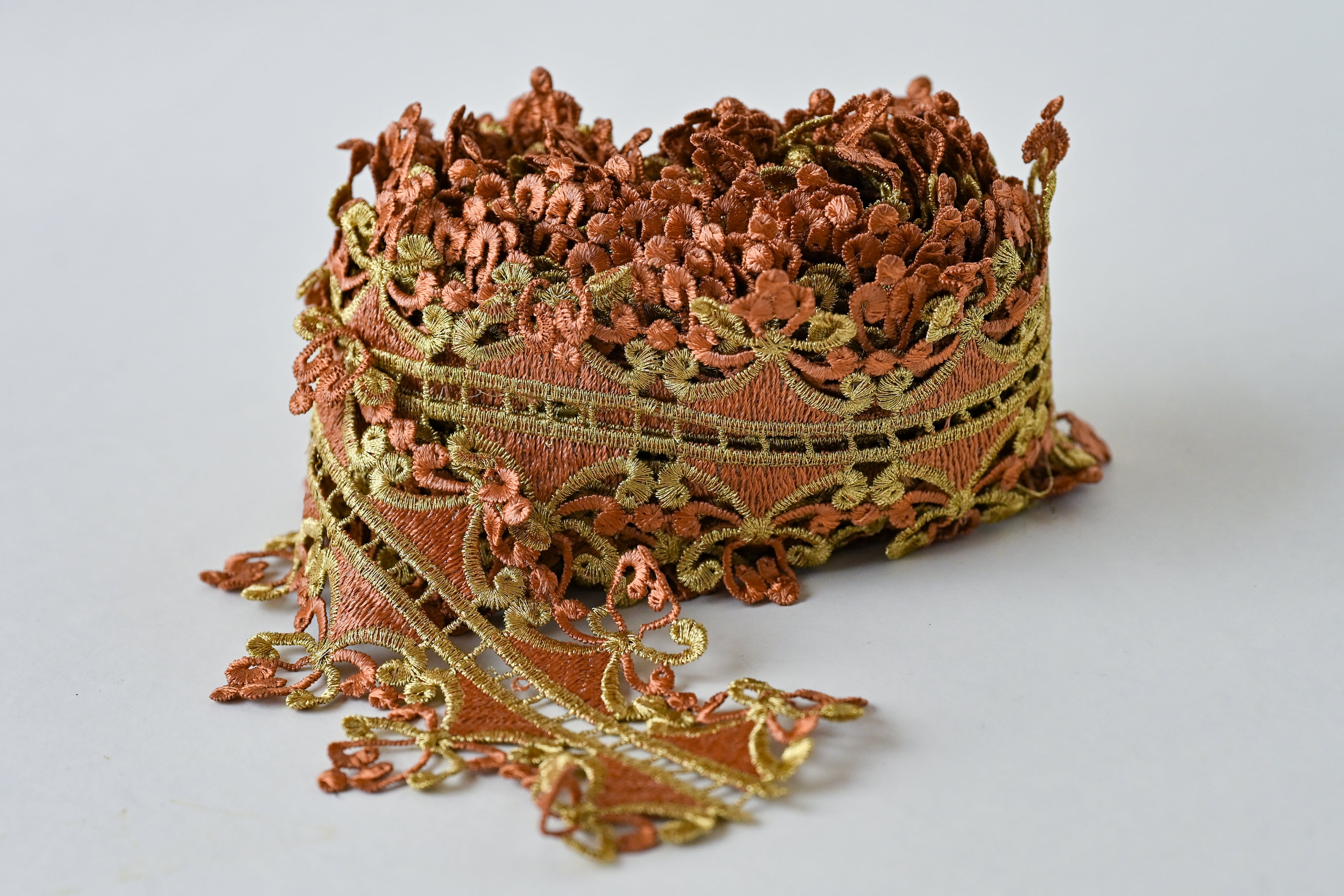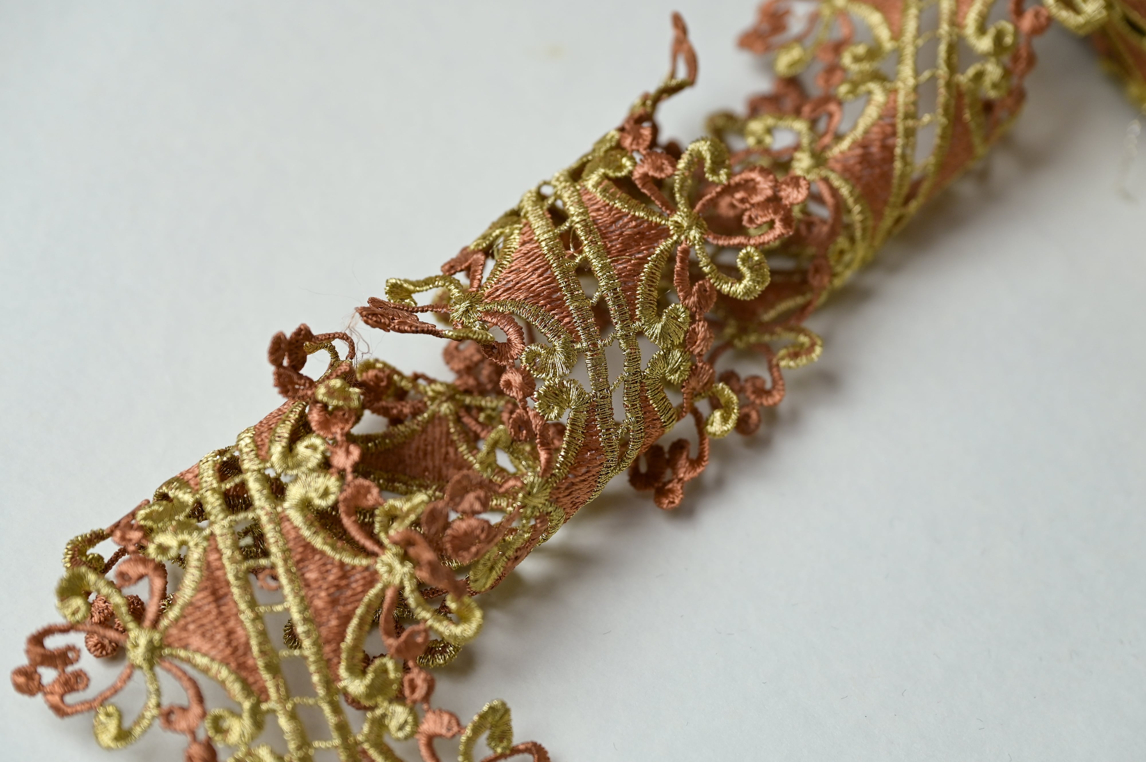 ブロンズ×グリーンの立体刺繍リボン(幅8cm・1メートル)
