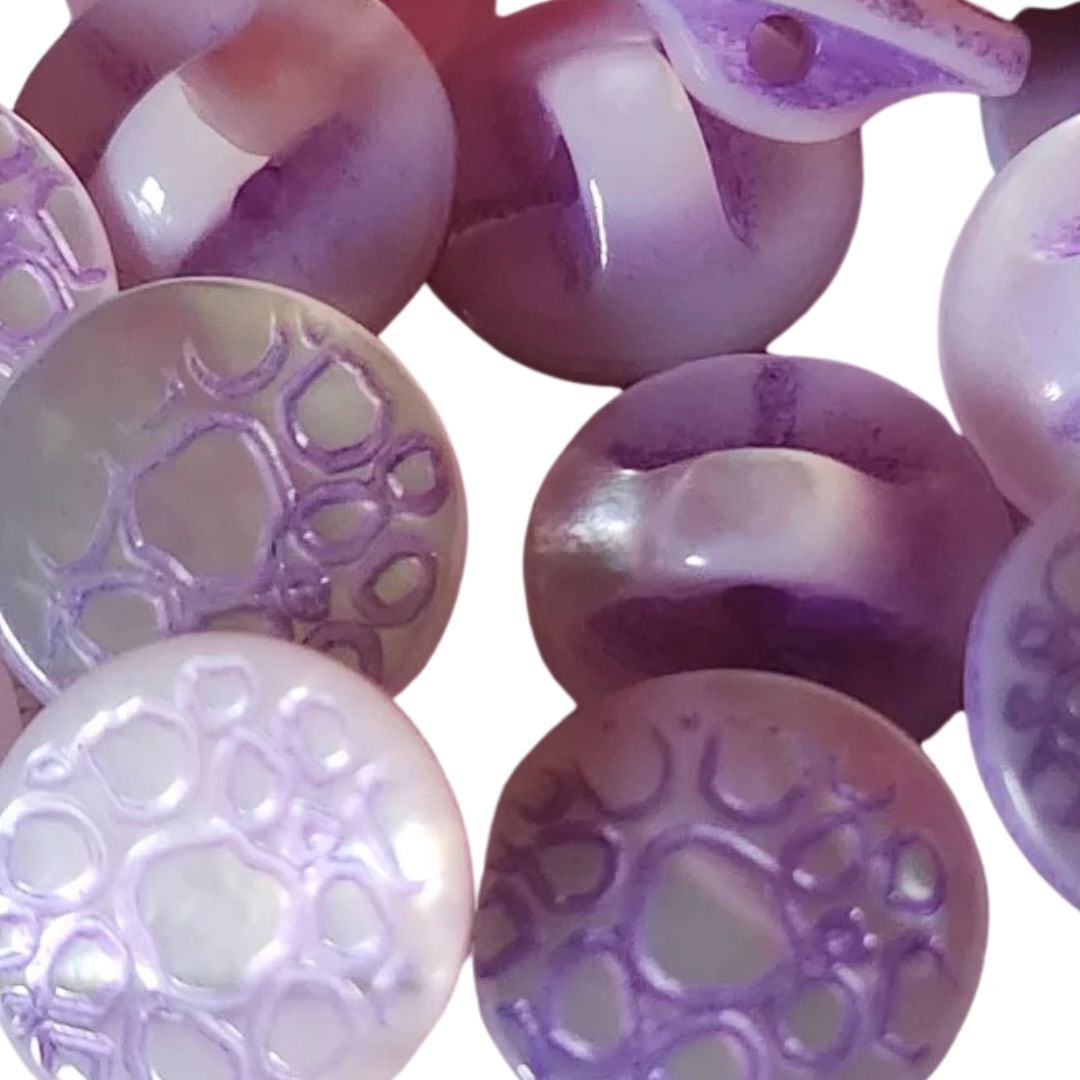 アクリル製のボタンにマザーオブパールのボタンが入っておりとても素敵なデザインです。