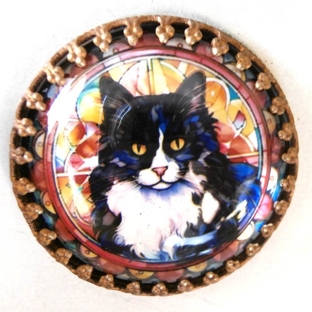白黒ふわふわ猫 ガラスボタン チェコアンティークボタン 希少 猫ちゃんチェコスロバキア刻印