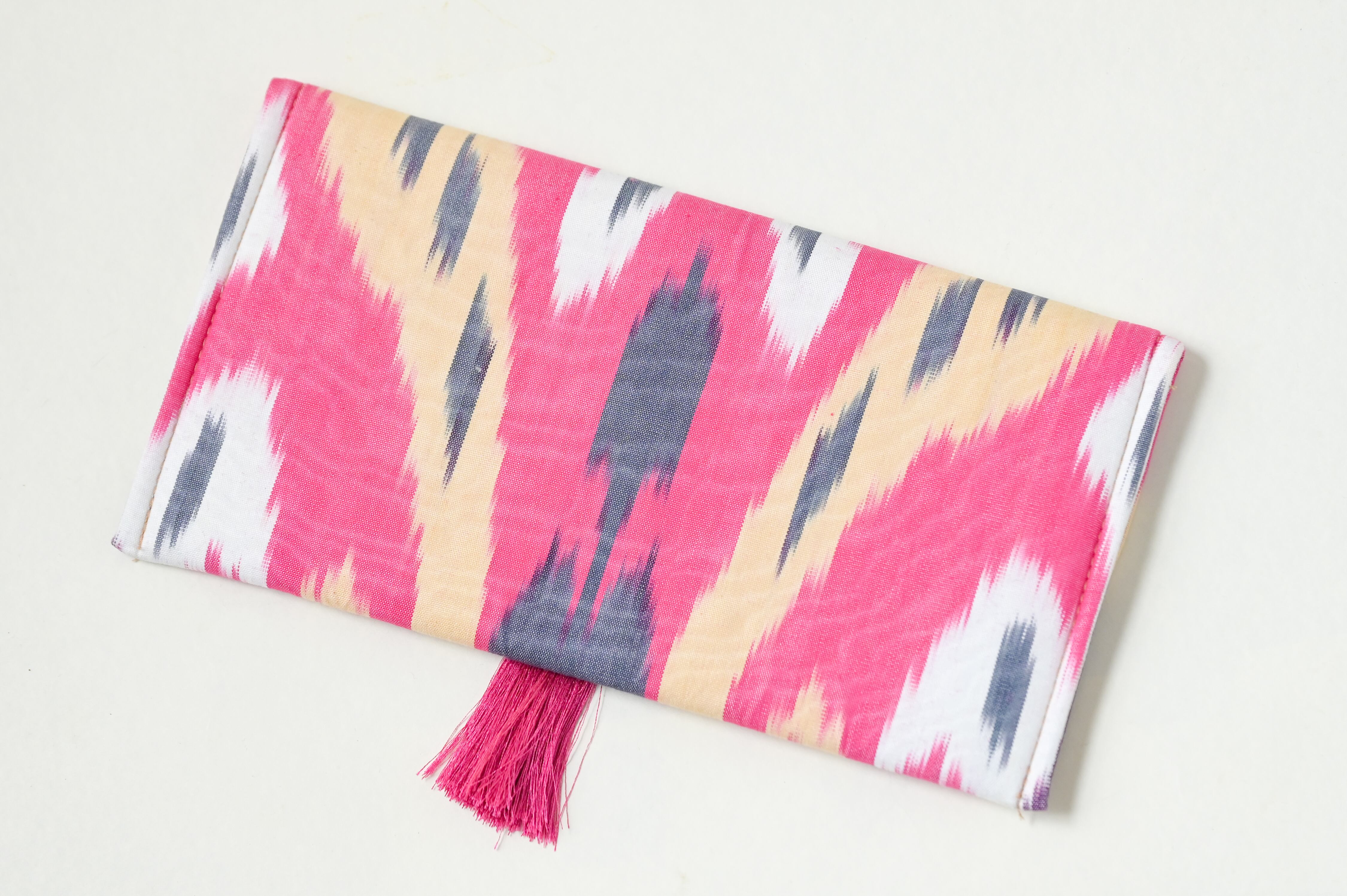 アドラス生地 ポーチ タッセル付き|シルクロードの手仕事(1点物)