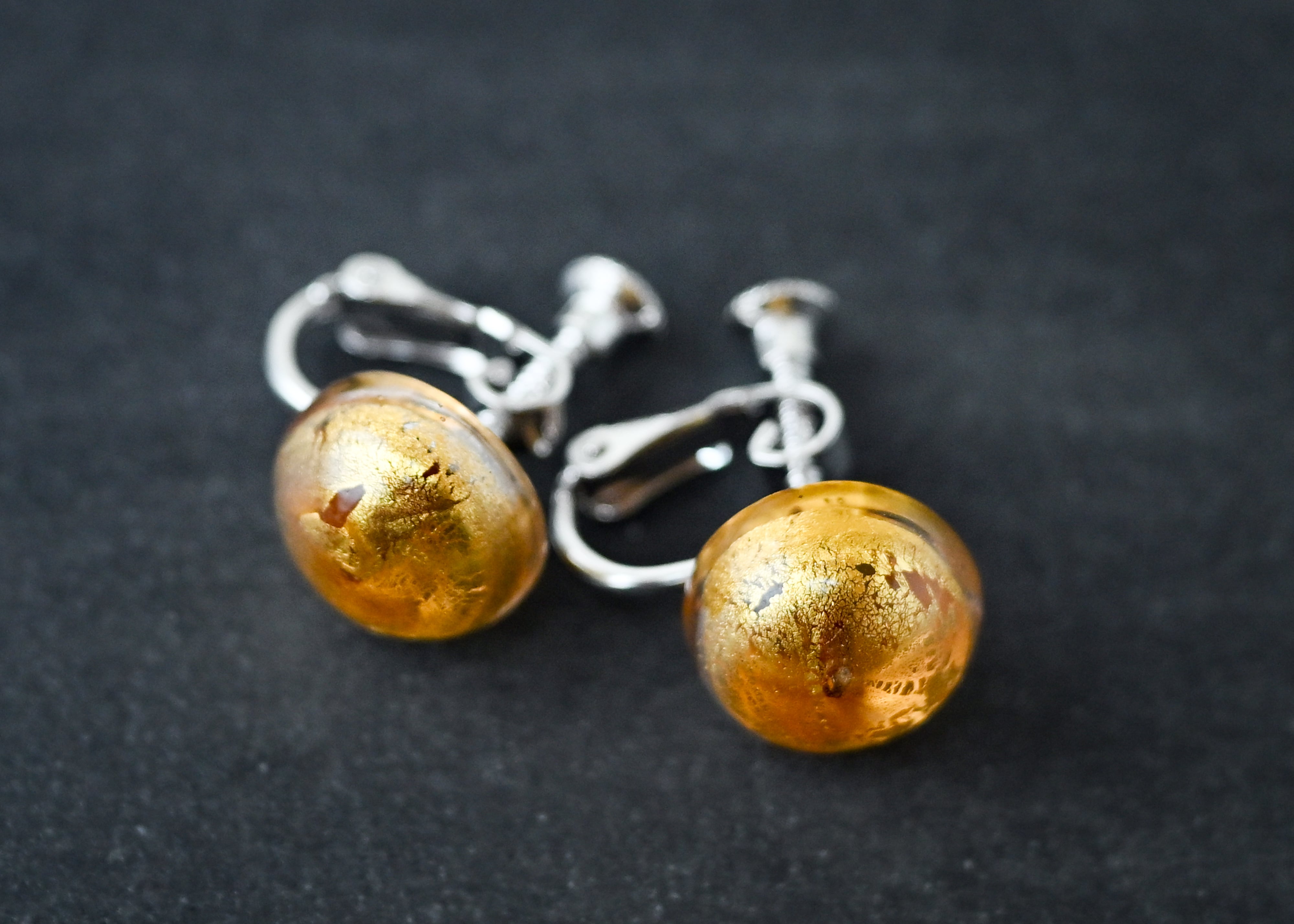 ベネチアンガラス スタッドイヤリング トパーズ
