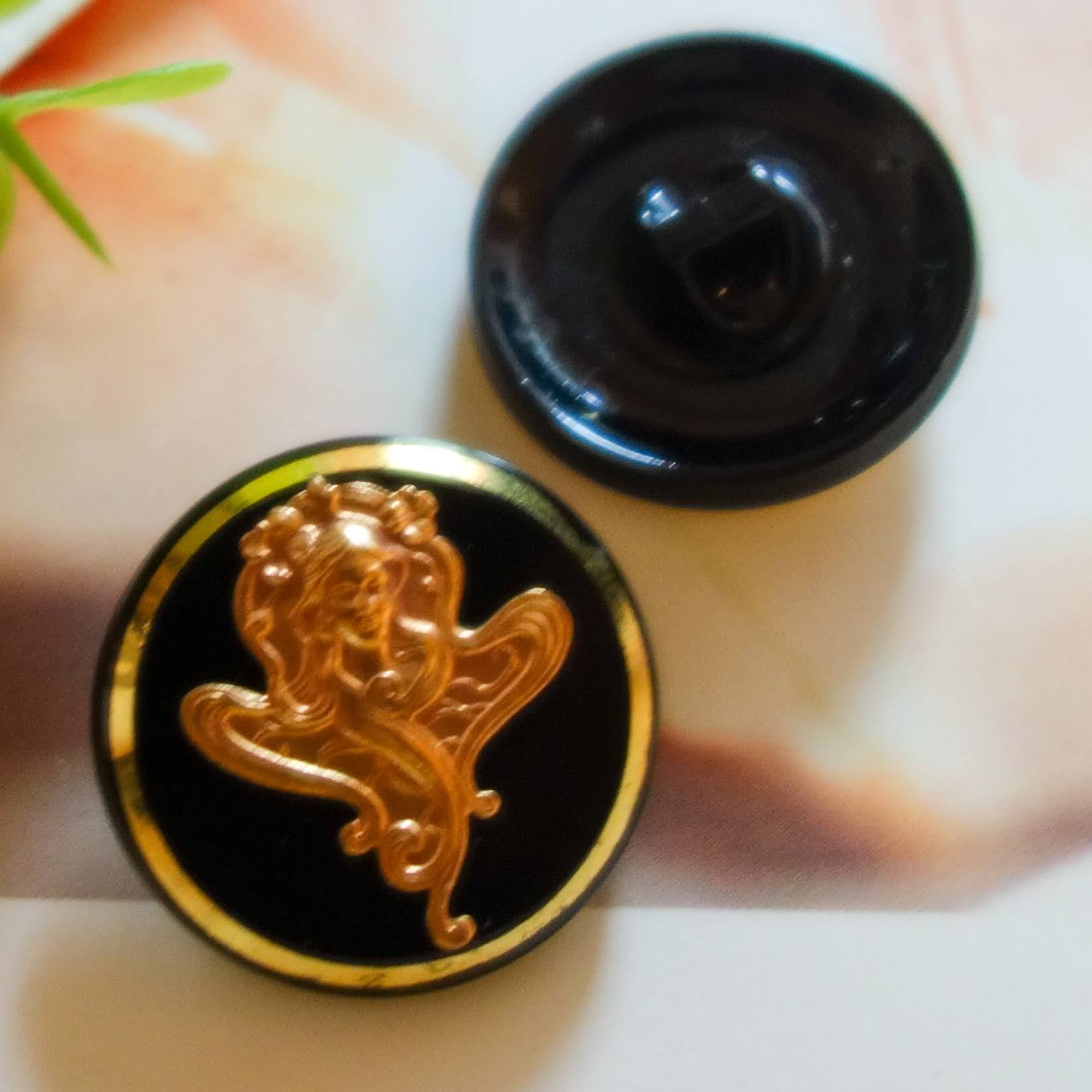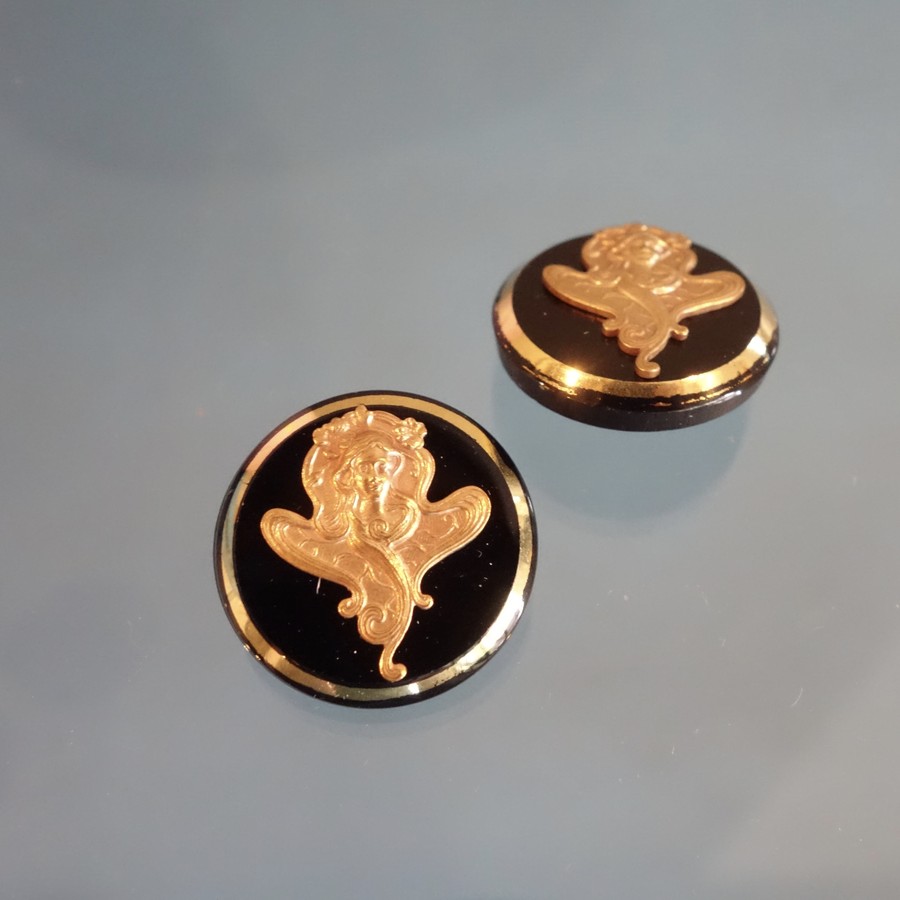 ※アール・ヌーヴォーとは、19世紀末から20世紀初頭にかけてヨーロッパを中心に開花した国際的な美術運動のこと。アルフォンス・マリア・ミュシャのデザインがモチーフとなったボタン。