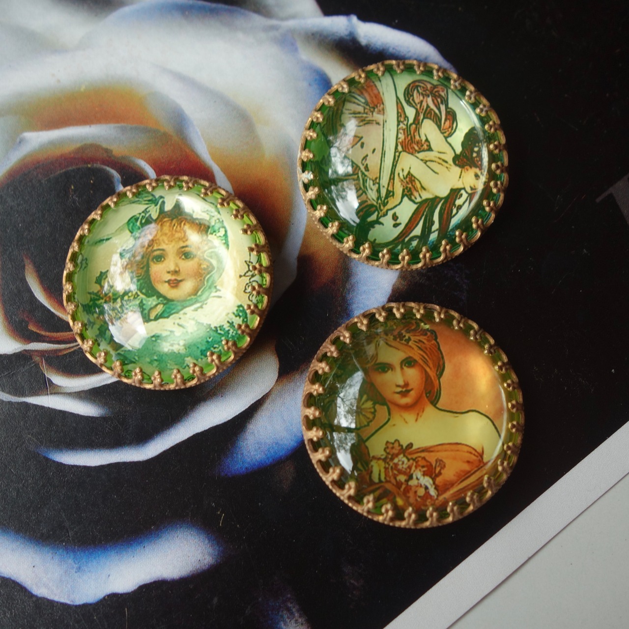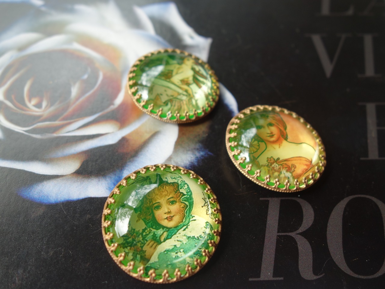 ガラスボタン チェコアンティークボタン 希少 チェコスロバキア刻印 ウランガラス おしゃれ ボタン