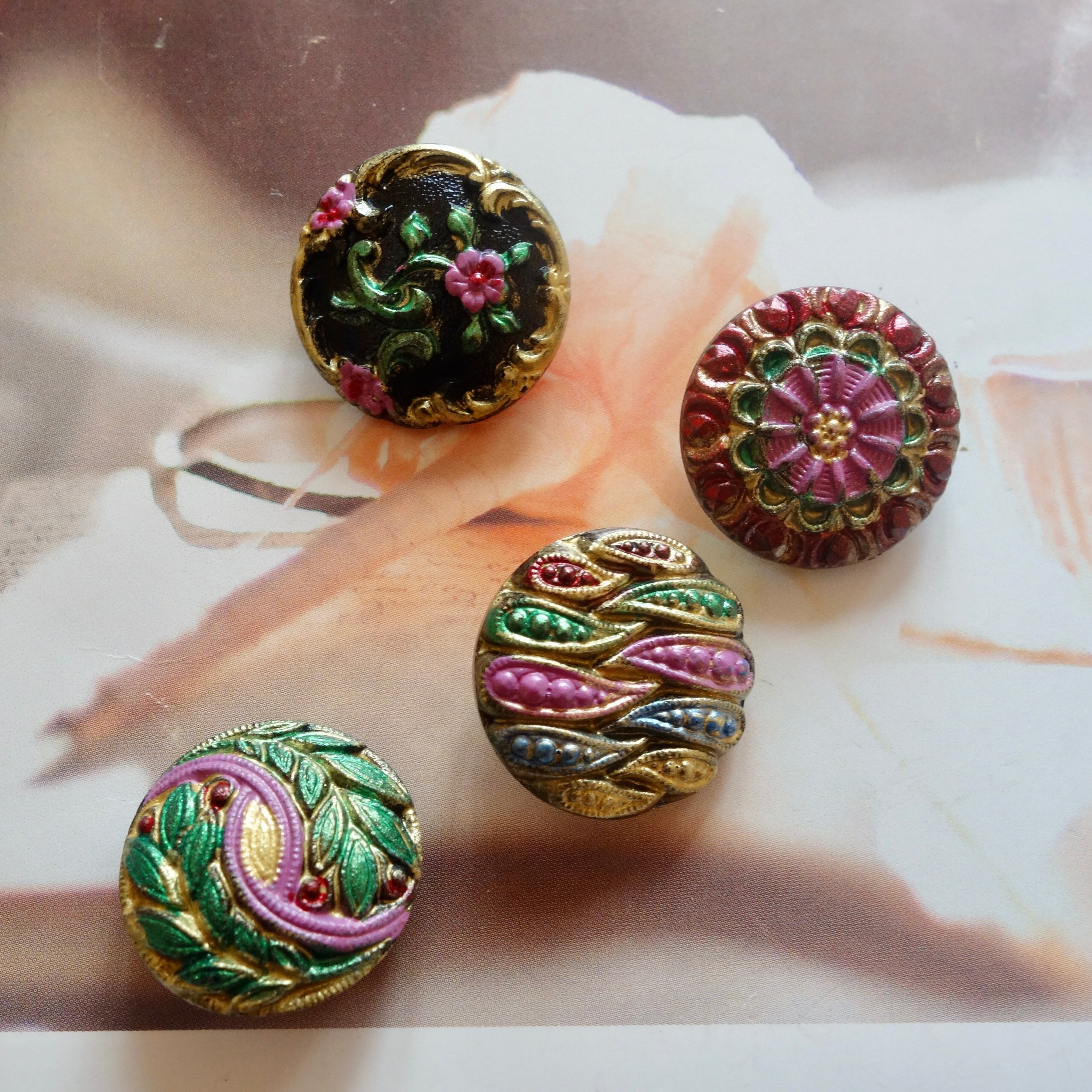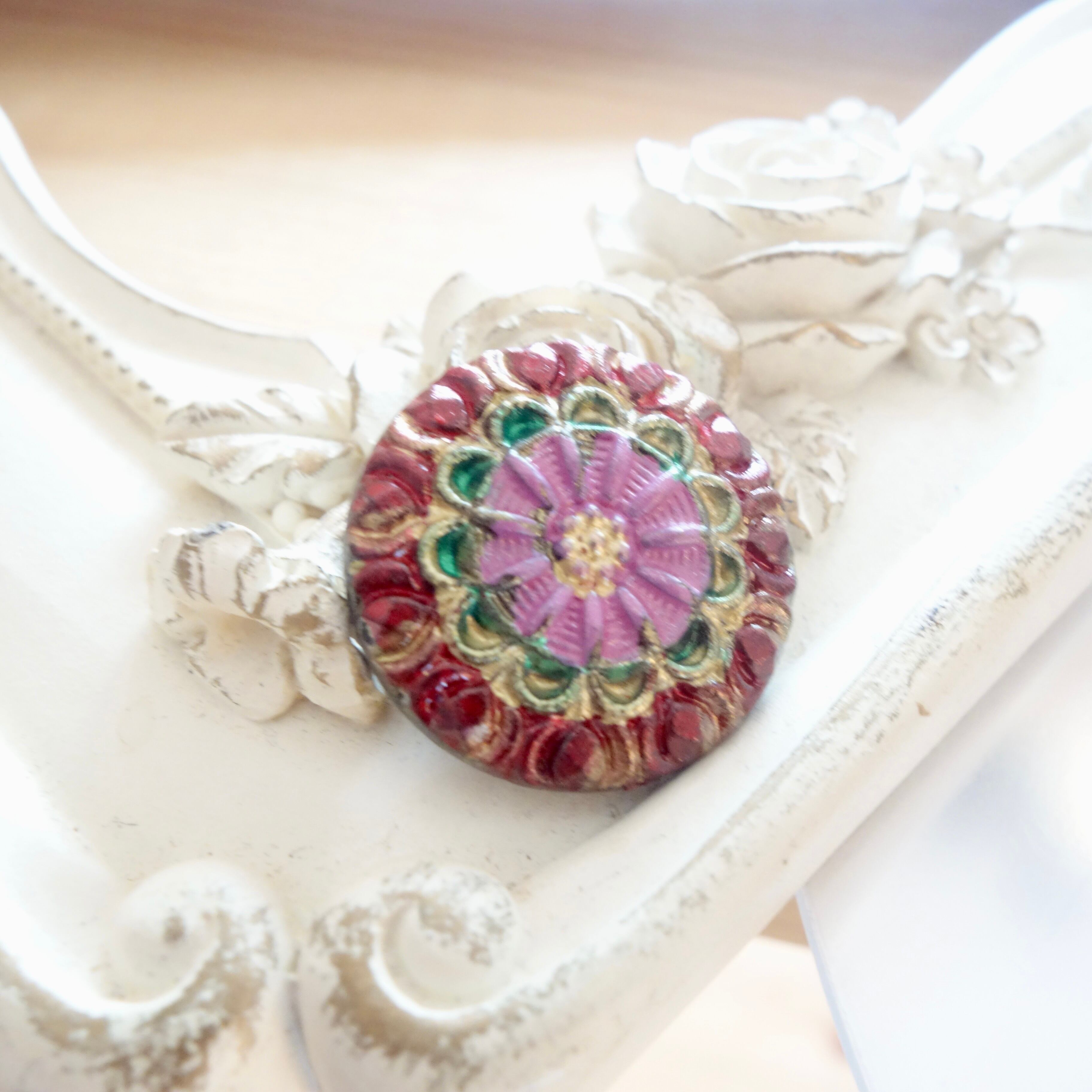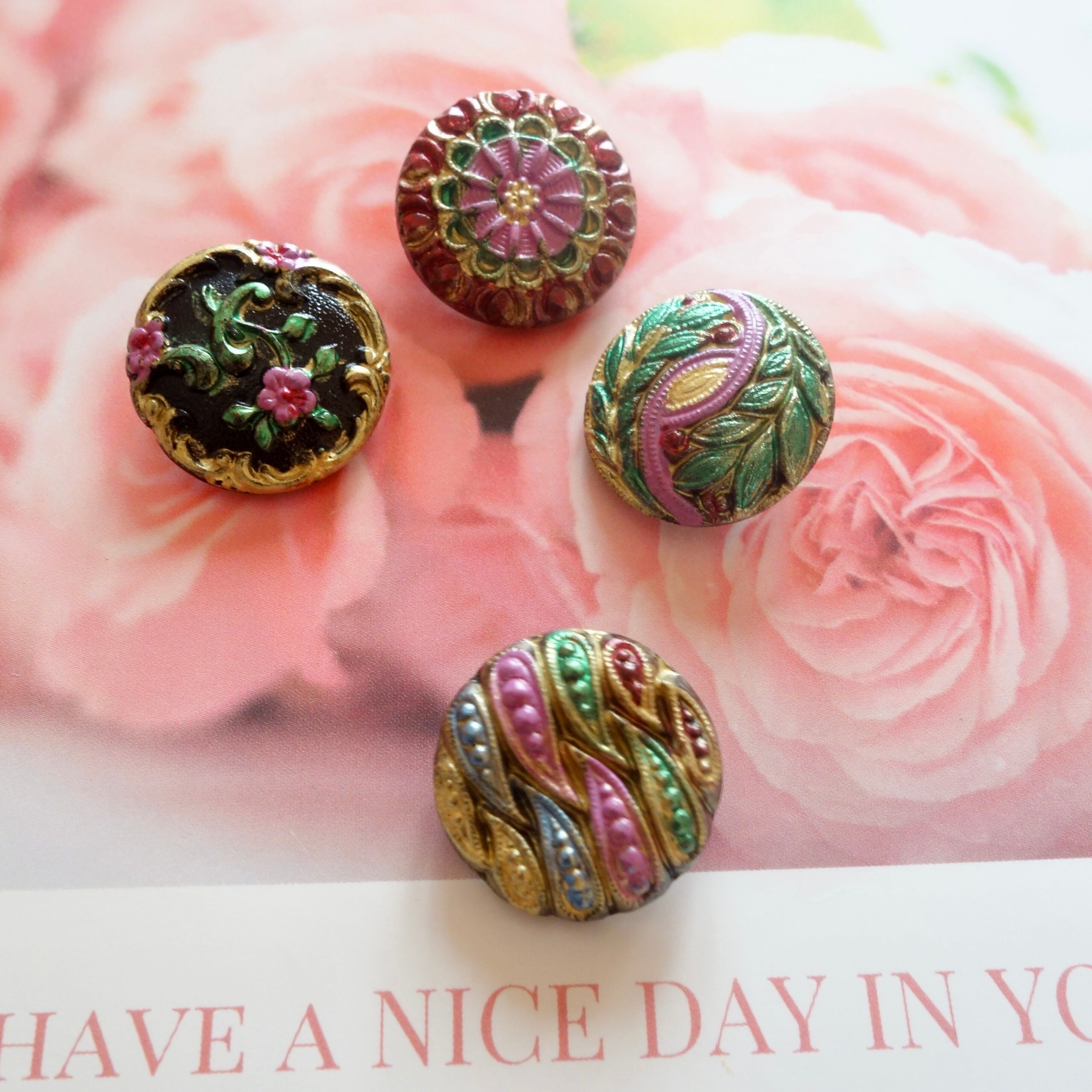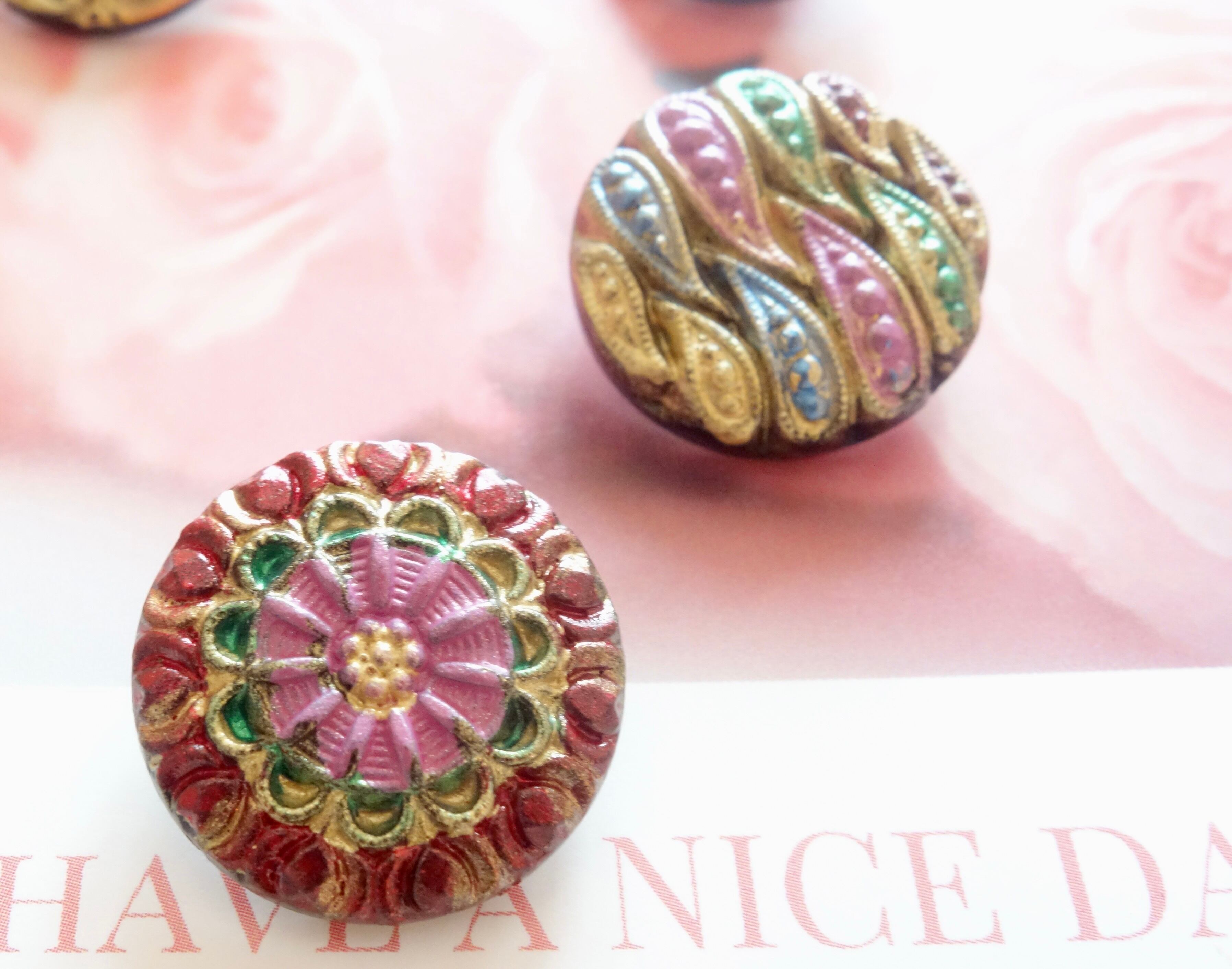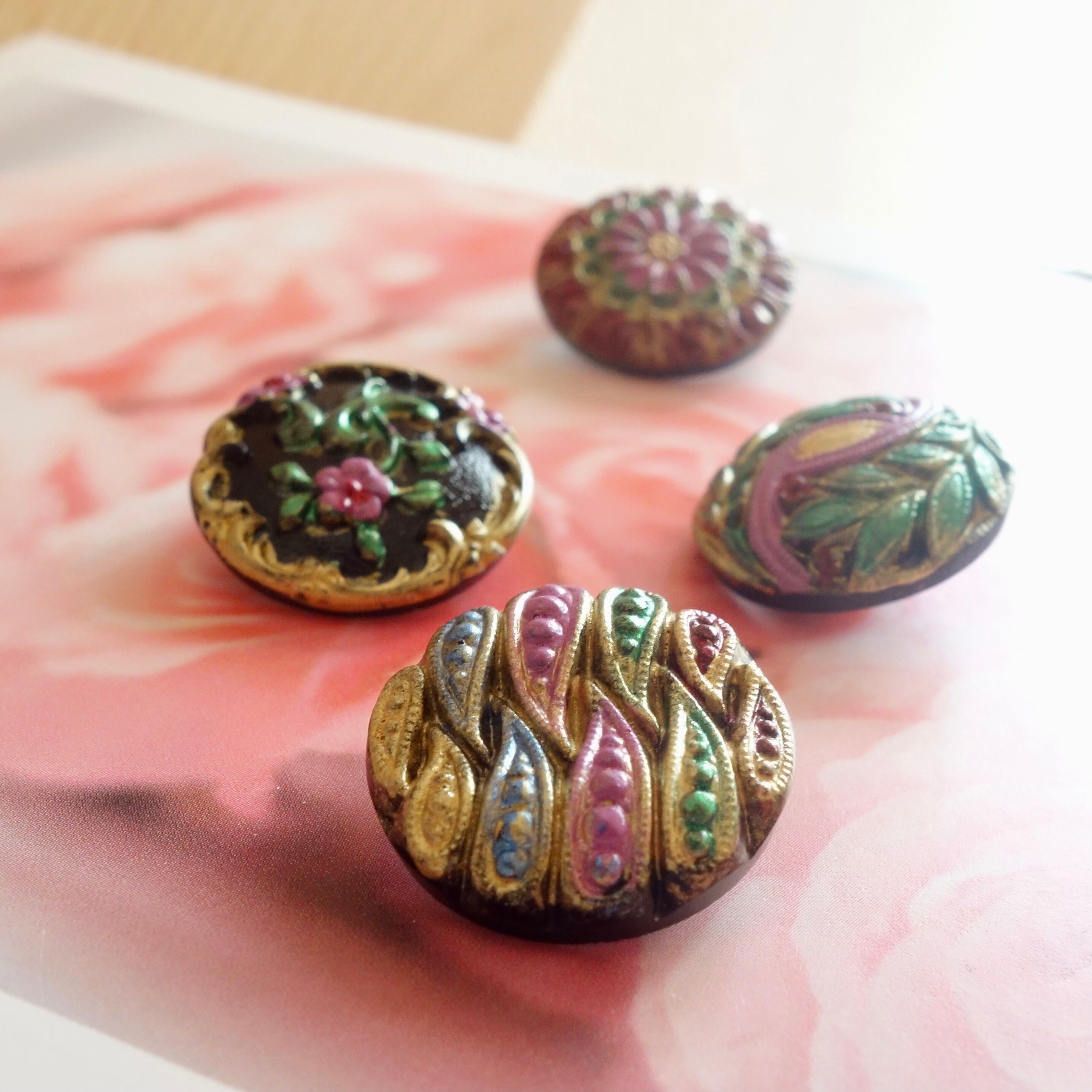 アンティークチェコボタン レア ブラックガラス 手描きボタン 1920-1930年代