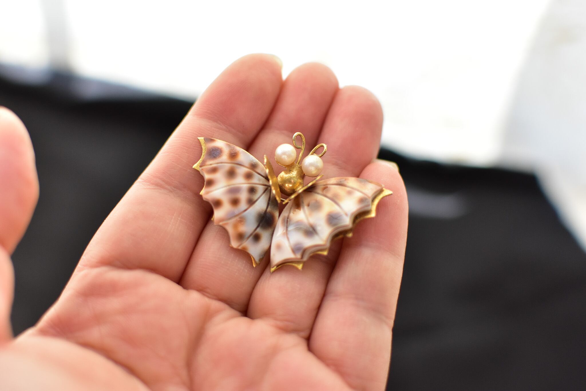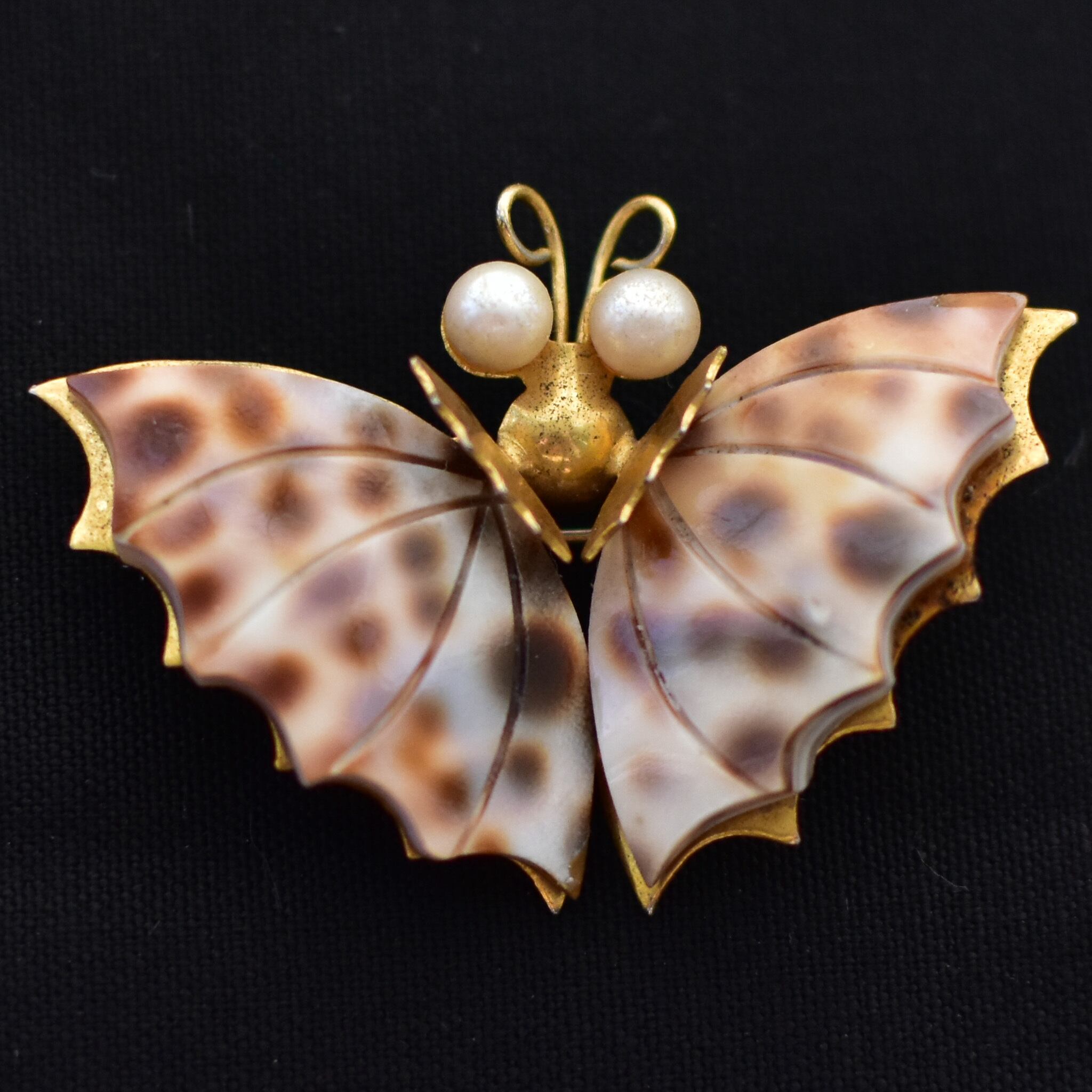 通常貝のブローチですと、キラキラのあわびの貝殻などを利用している