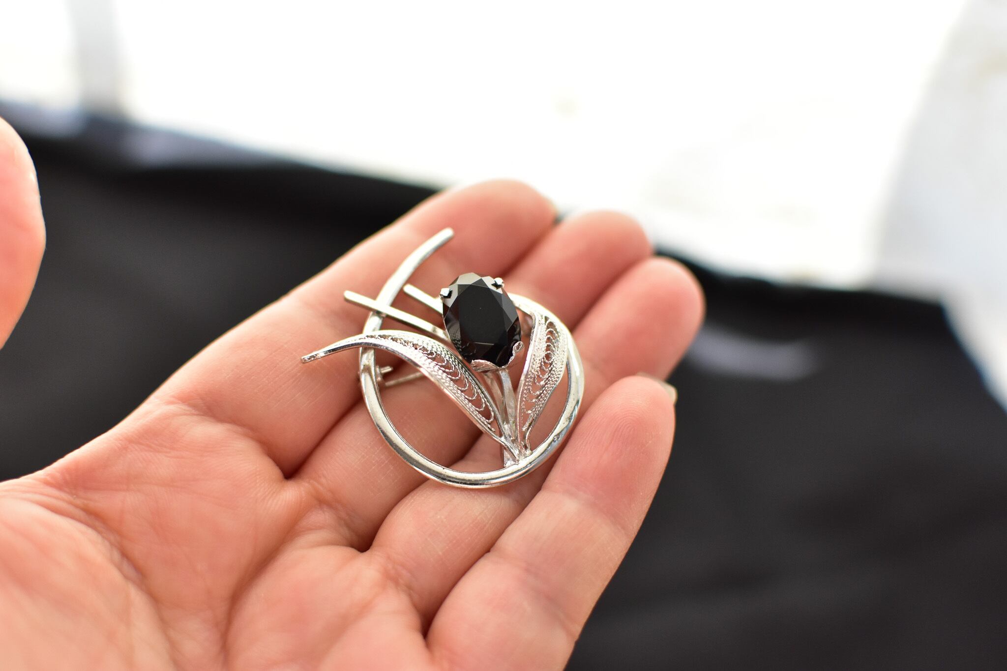 フィリグリー細工 という金属加工が葉っぱ部分にされている美しいブローチです。