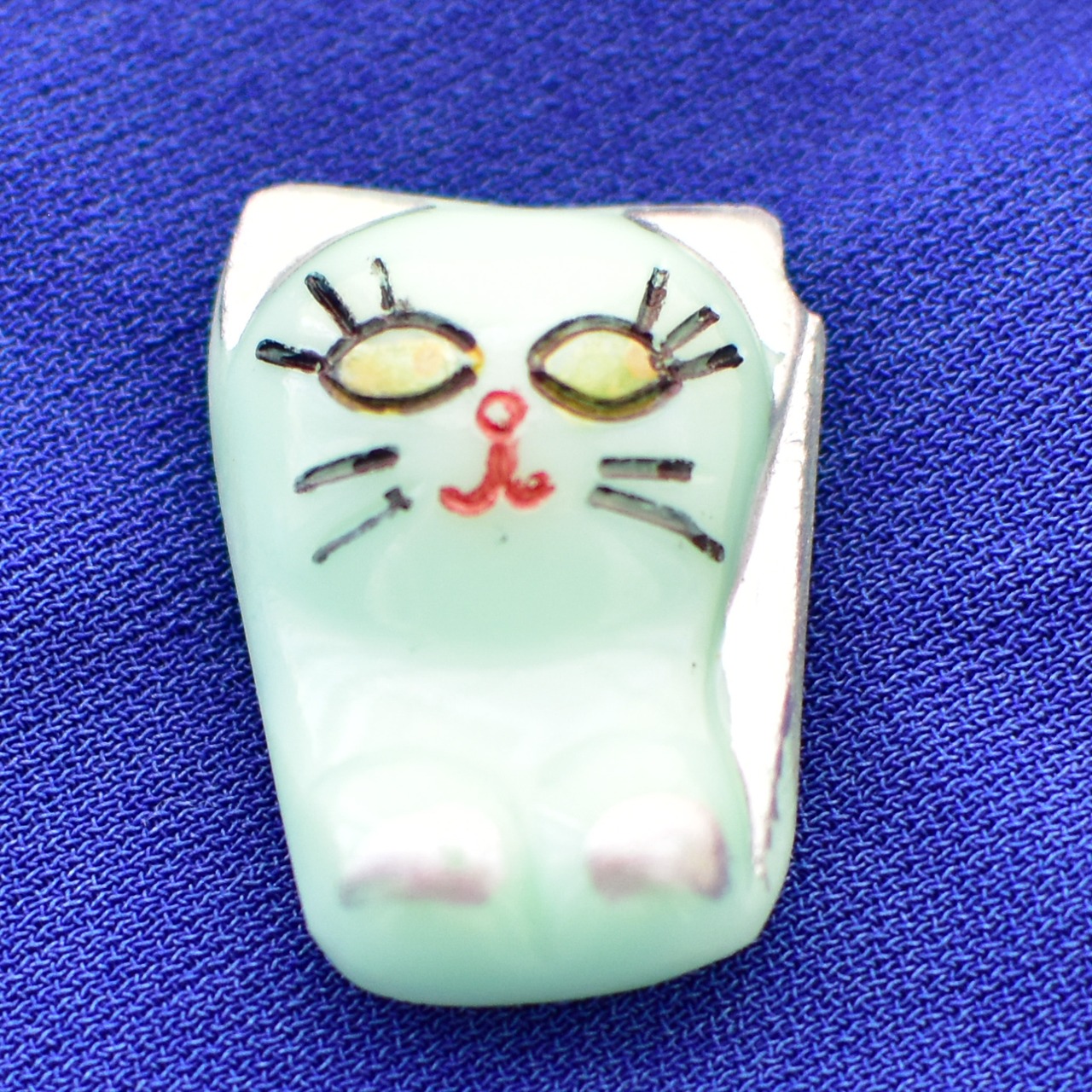 27ミリ ブルーガラス チェコガラスボタン 猫 おしゃれ ボタン グリーン