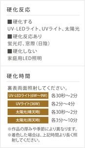 ● UV-LEDライトで1~2秒で硬化が始まり、30秒~2分で硬化。