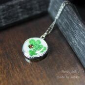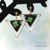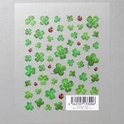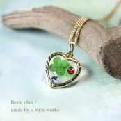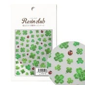 三つ葉のクローバーと幸運の四つ葉のクローバーをレジンシールに。テントウ虫をワンポイント入れても可愛いです。