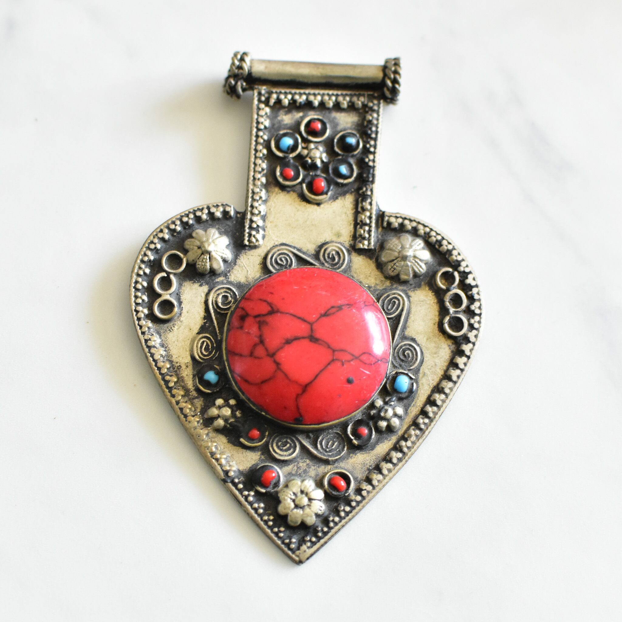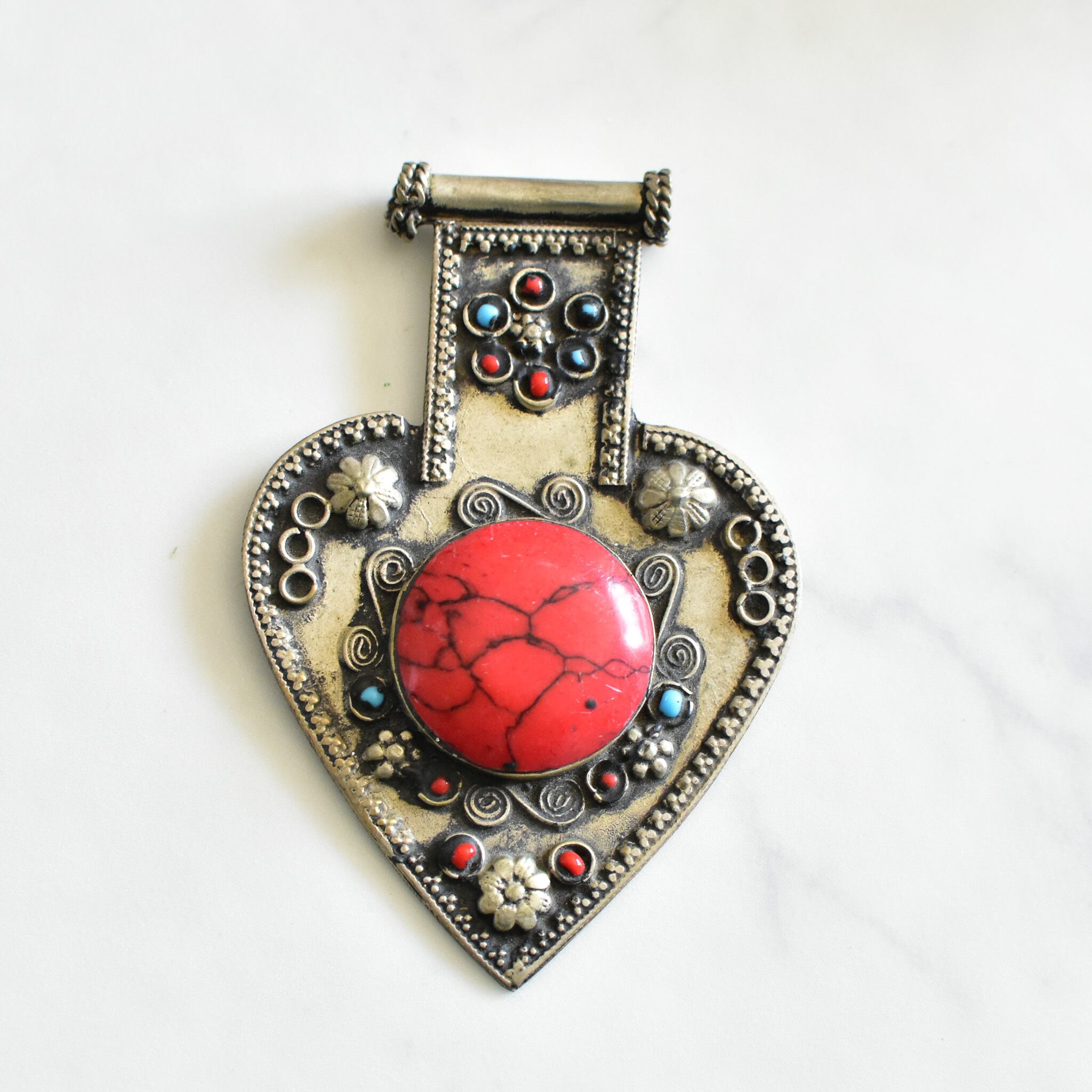 アンティークの土台に、石をはめて創られたペンダントトップです。