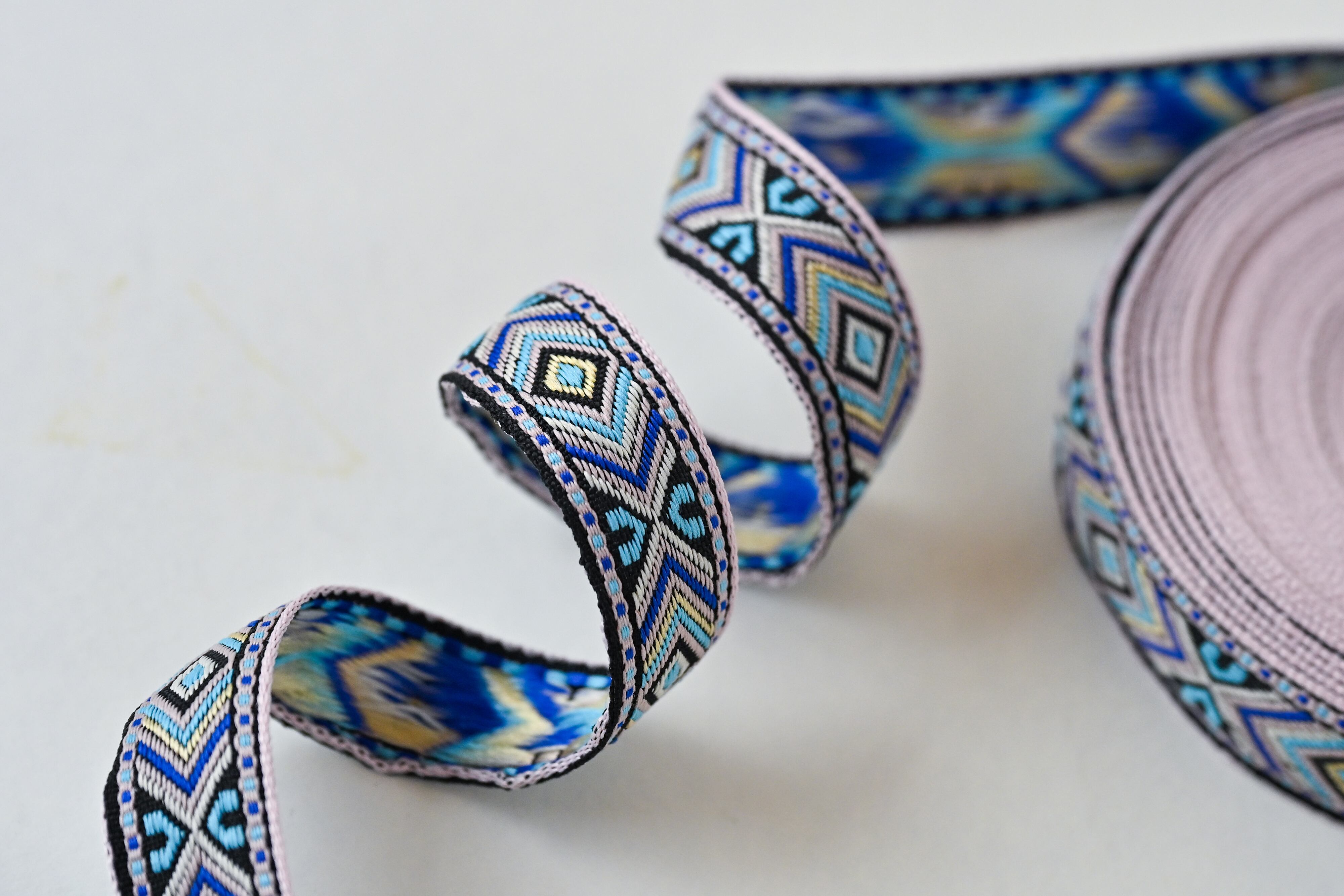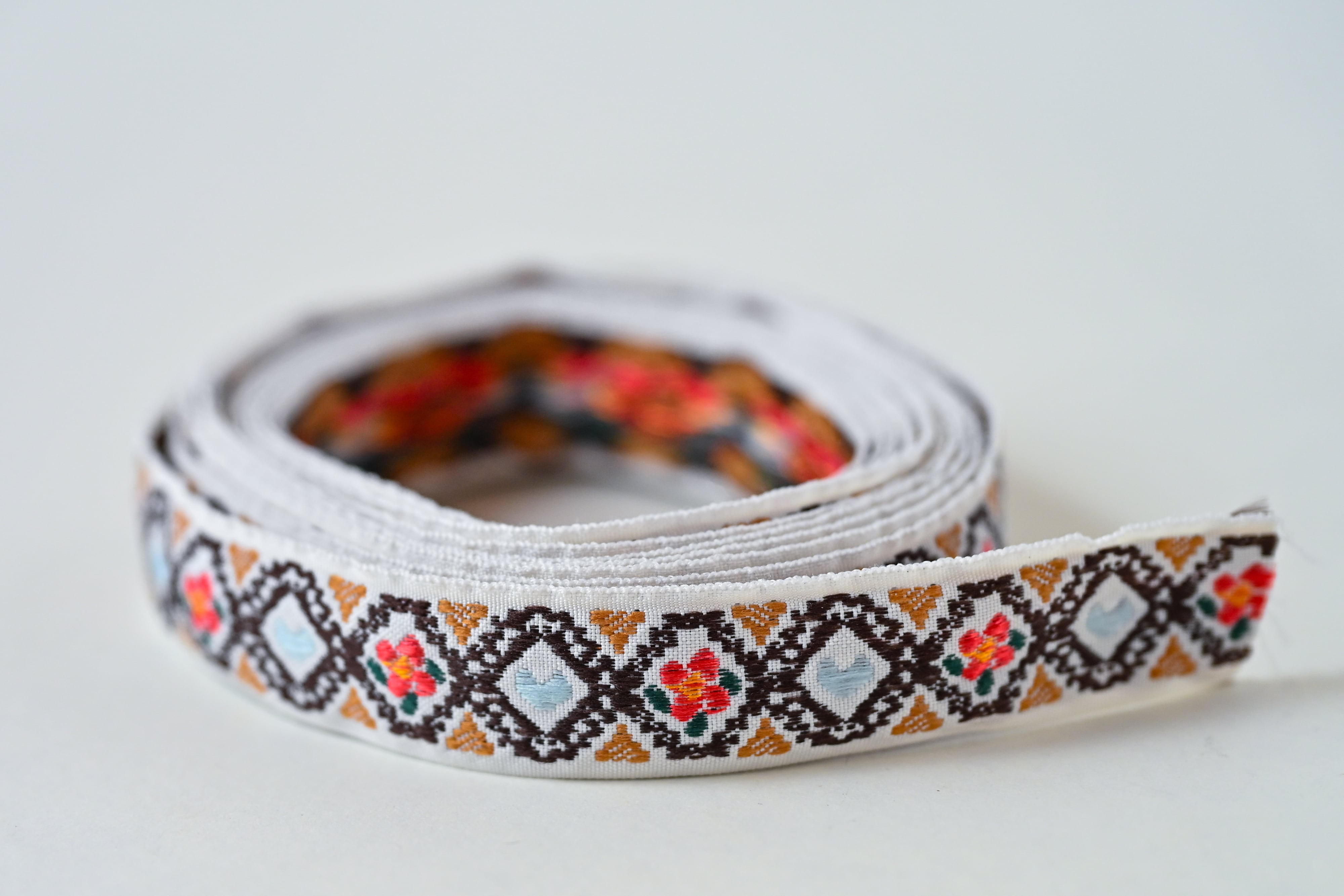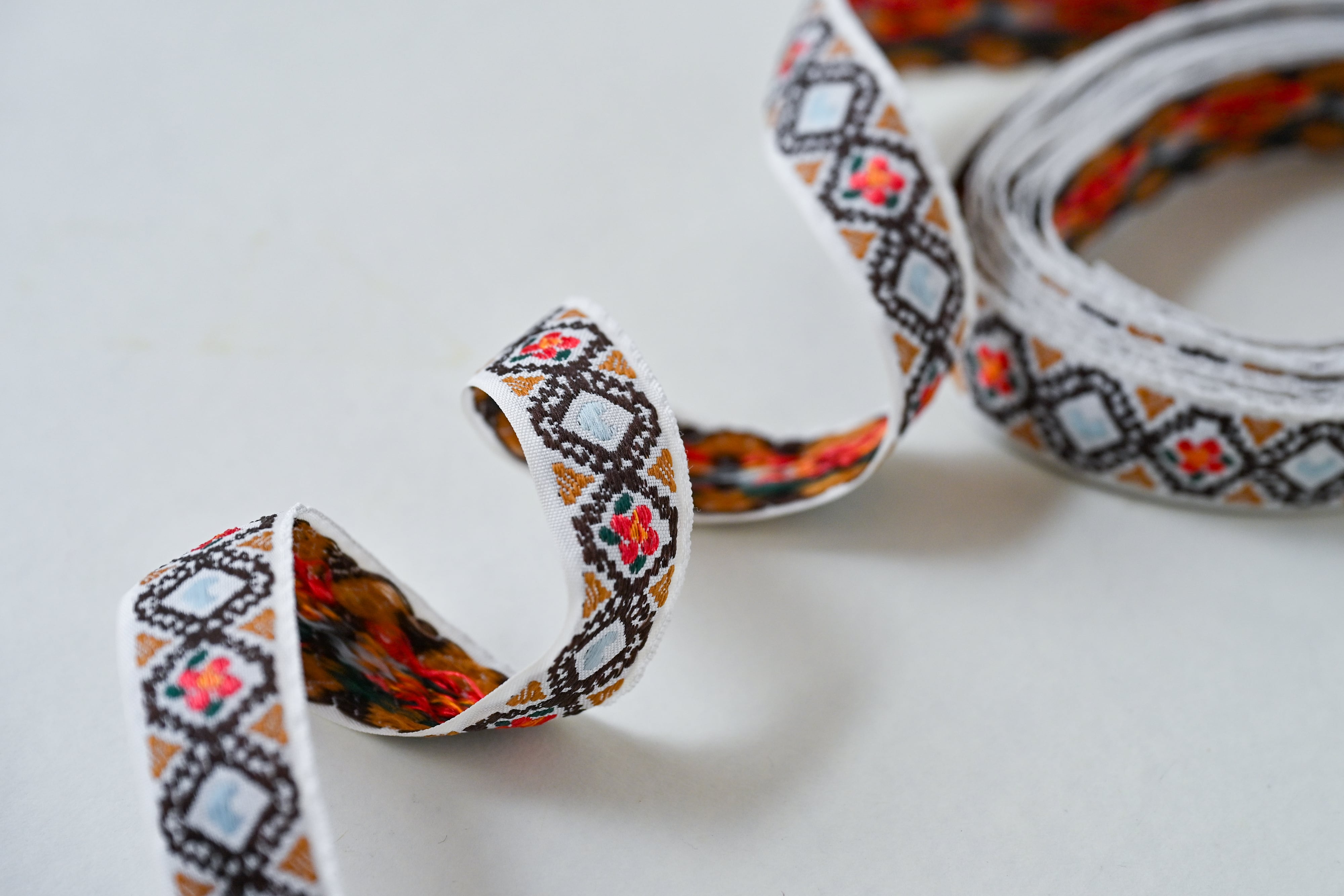 刺繍のような立体感が魅力のジャカード織リボンです。