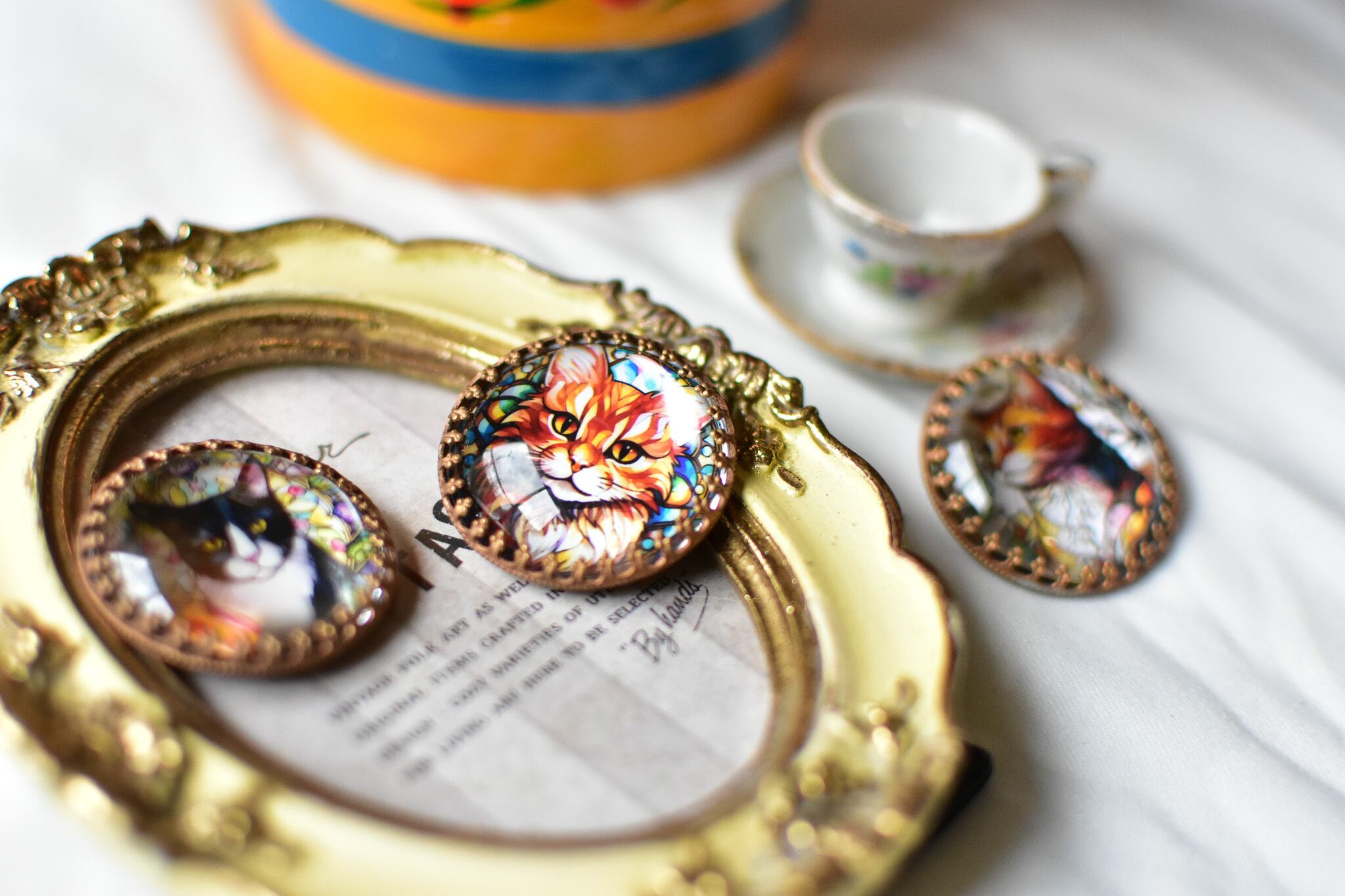 トラ猫 ガラスボタン チェコアンティークボタン 希少 猫ちゃんチェコスロバキア刻印