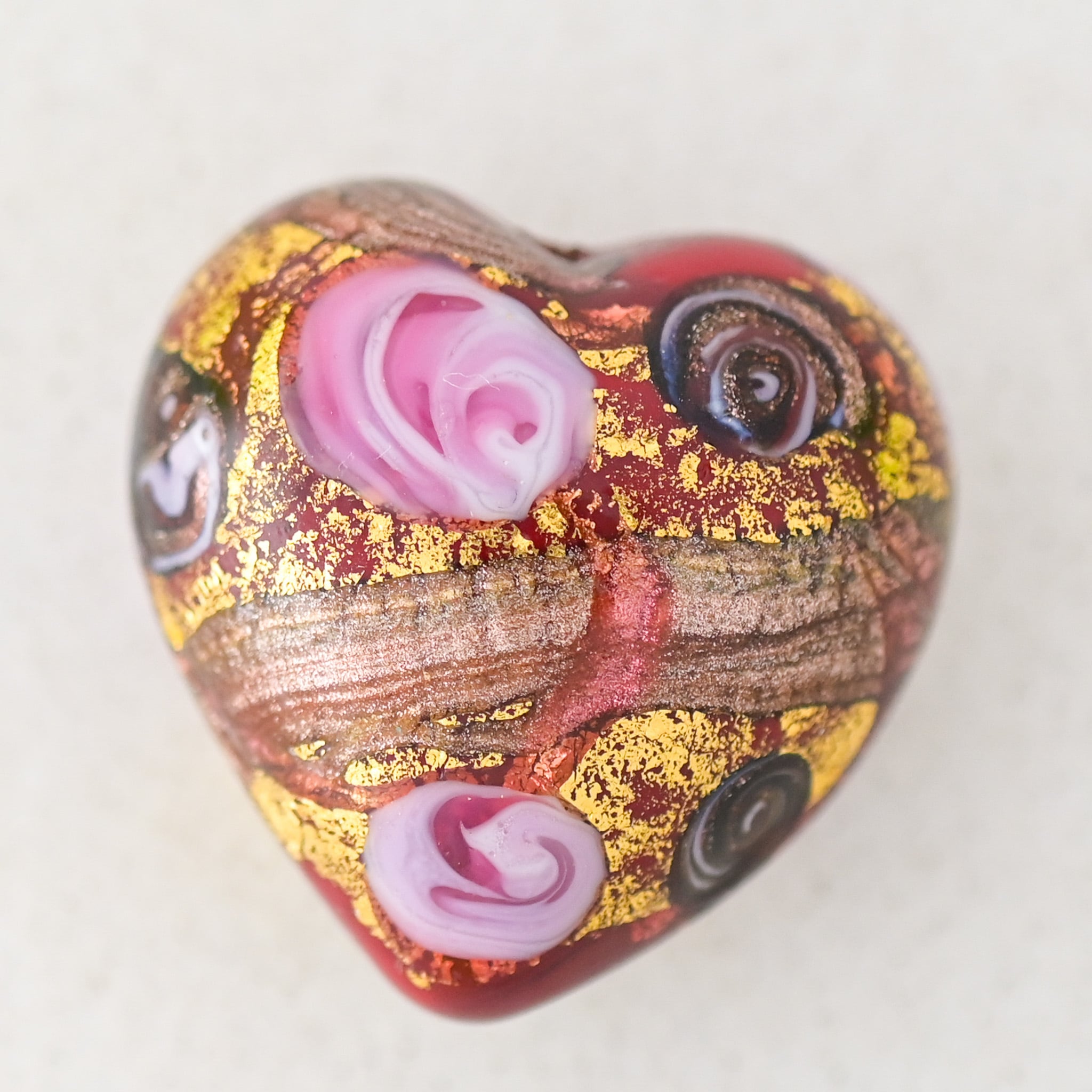 ベネチアンガラスビーズ ハート型 25ミリ フィオラート