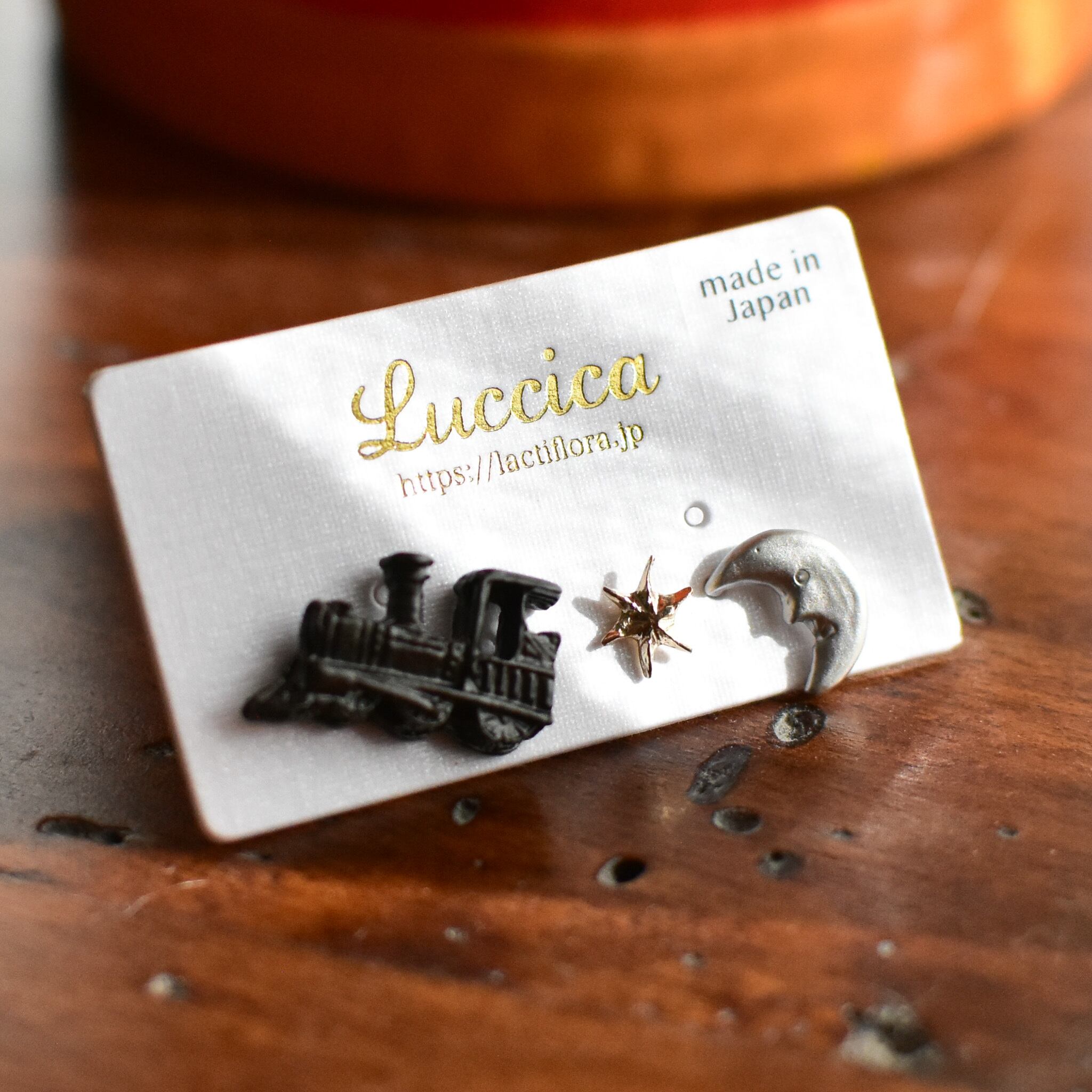 大きさ:汽車:1.0×1.7cm 星:0.7×0.6cm 月:1.0×0.7cm